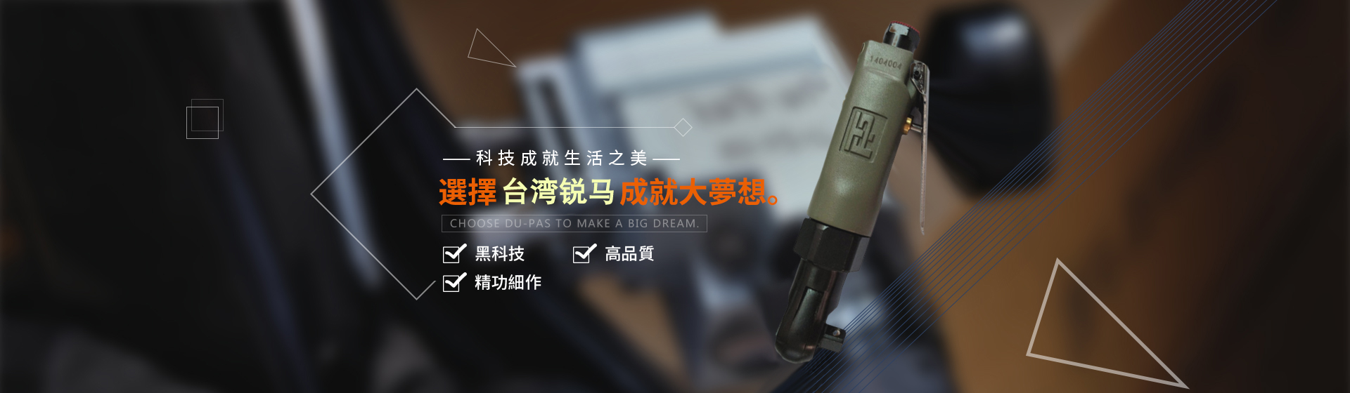 為給廣大客戶提供更加優(yōu)質(zhì)完善的服務(wù),臺(tái)灣銳馬氣動(dòng)工具于2001年進(jìn)入中國(guó)大陸市場(chǎng),并以100%臺(tái)灣原裝進(jìn)口氣動(dòng)工具在大陸銷售銳馬、杜派氣動(dòng)工具以及充電式電動(dòng)工具。